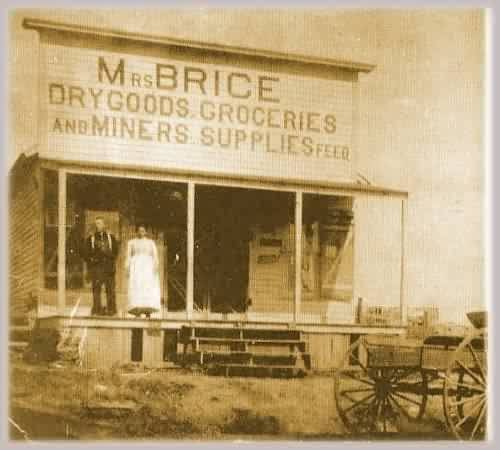Mrs BRICE DRY GOODS GROCERIES and MINERS SUPPLY feed This is a photo of the contributor's father's grandmother's store. This store was on 4th Street. This street is on the east side of Lehigh and is now a residential area. |
