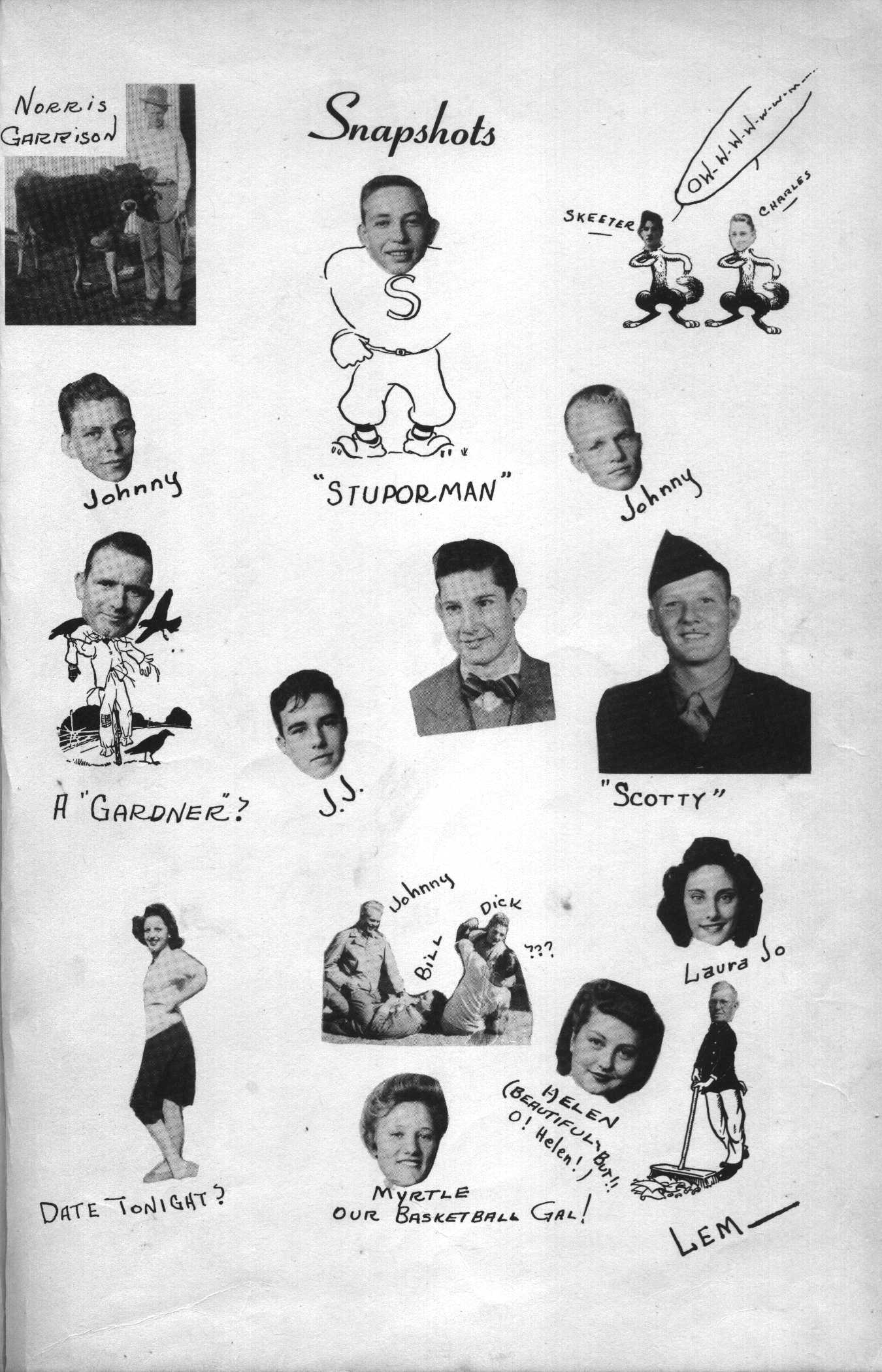 Norris Garrison, Skeeter, Charles, Johnny, Gardner, J J Scotty, Myrtle, Bill, Dick, Laura Jo, Helen, Lem