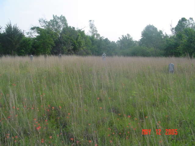 This cemetery was located four miles northeast of Eufaula, Oklahoma, in Sec. 13, T10N, R16E. Reinterment was made adjacent to the Fishertown Cemetery, eight miles west and one mile suth of Texanna, McIntosh Co., Oklahoma, in Sec. 18, T10N, R18E. [Additional information on this cemetery]