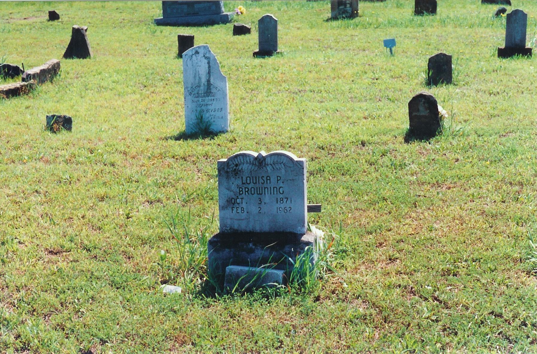 Louisa P(aralee) (Stewart) Browning 10-3-1871 2-2-1962 Buried at Central High Cemetery