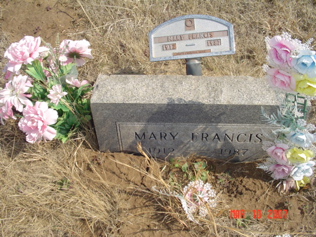 grandmother; a grandson, Brett Buckmaster; Mary Francis; two uncles, George