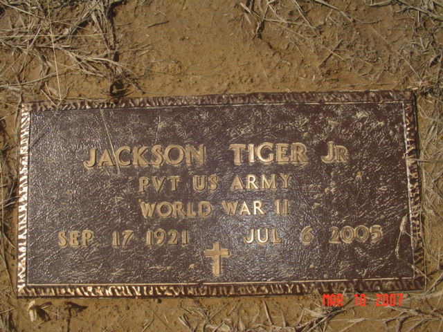 1921 to Lila (Collins) andJackson Tiger Sr.He was married to Dorcus (Lowe)