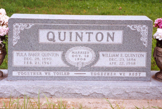 Mary Ann McGee Quinton b June 25, 1865 d May 15, 1933 w/o Robert H[anes] Quinton. It is a double stone with my sister Molly Ann Quinton dau of Monk & Lizzie.