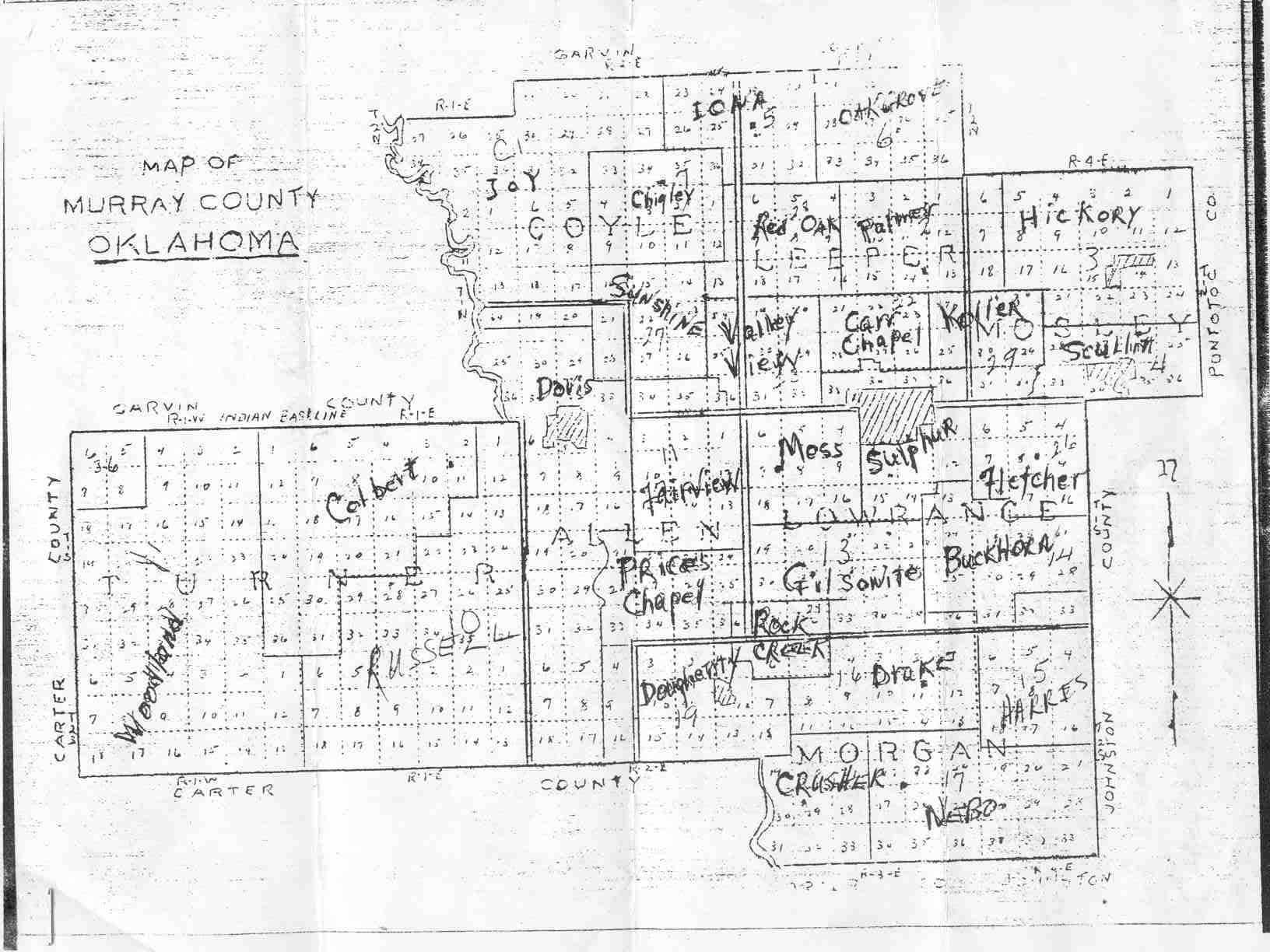 This map is thought to be dated after 1939.  The logic of this is that the Joy School district shown was not begun until 1923 when the schools of Washita, Talley and Carr Flat were all consolidated to form Joy School which did not exist until August 27, 1922.  Woodland School was begun on April 17, 1939.