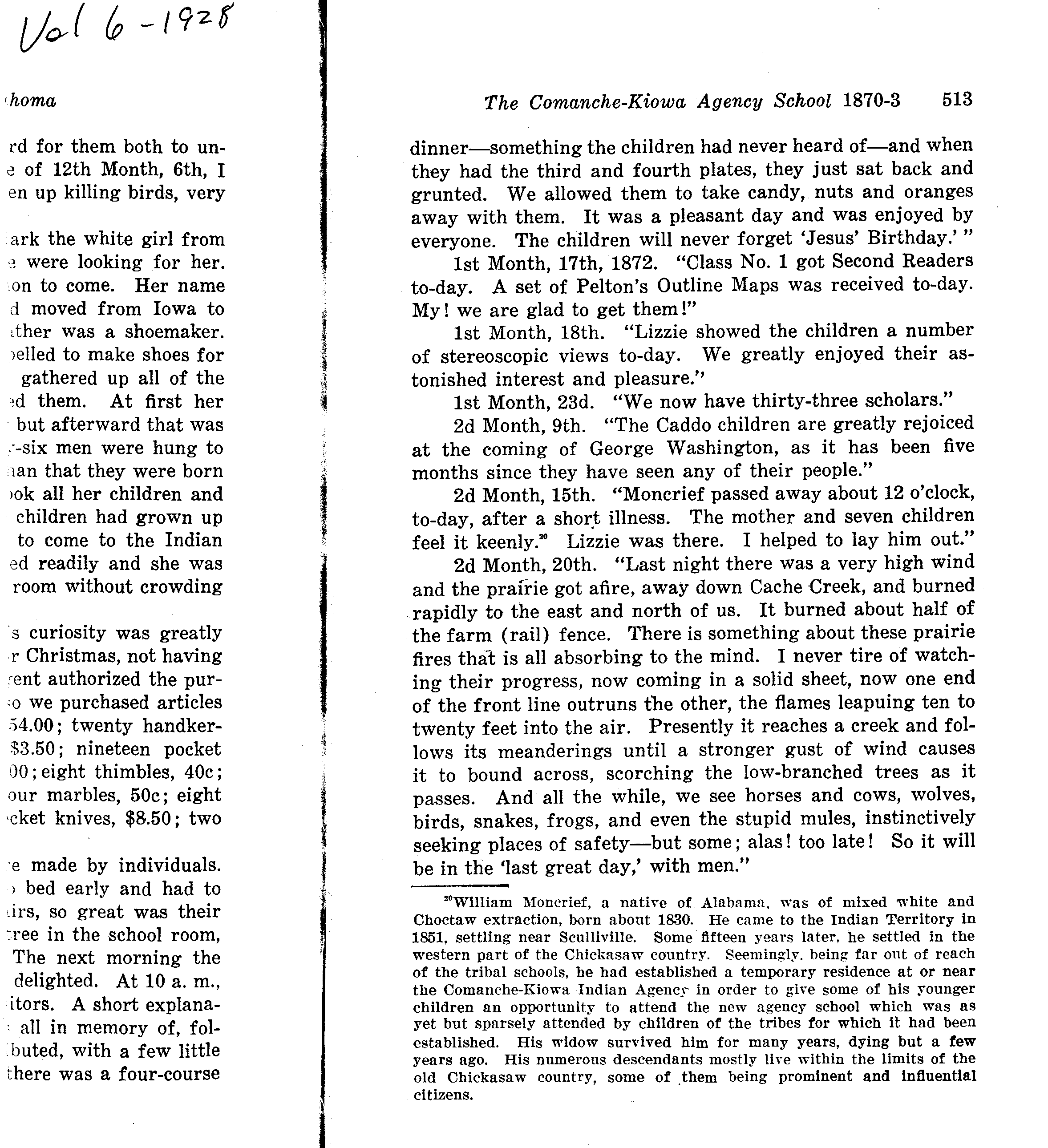 in Chronicles of Oklahoma, Vol. 6, 1928.