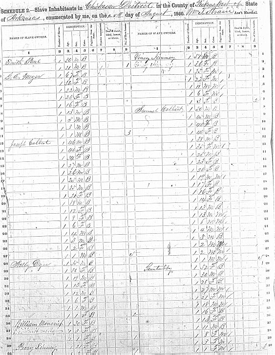 Transcription: 1860 Slave Schedule – Chickasaw District No. 1, Chickasaw County, Mississippi