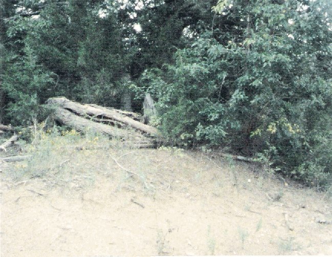tree and uncovers Mrs. Lowery's marker. Notice barbed wire fence surrounding