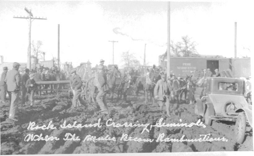 "Rock Island Crossing, Seminole. Where the mules become rambunctious."