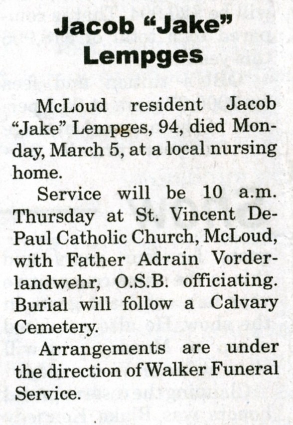 Graveside services were held Saturday, Feb. 24, at Tecumseh Cemetery with Elder