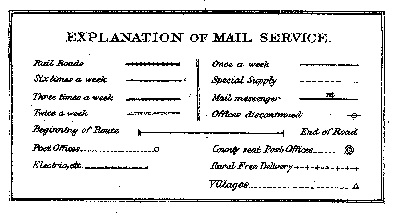 Information Provided This map shows all OT/IT Post Offices in service in 1903 (plus some that had been discontinued) and the network of mail routes over which mail passed to reach its intended recipients. Most routes started at a Post Office that was on a railroad and mail was taken from there to other Post Offices that didn't themselves have rail service. In some cases, a short route started from an outlying office to connect with existing service at a nearby one. Deliveries ranged from six times a week to major Post Offices along the Railroad to one delivery a week to small offices in outlying areas. The map's legend shows frequency of delivery, but the original map was color coded and it is difficult to interpret frequency of delivery from the available black and white copy. The routes themselves are clear, however, and this is the information of greatest use to genealogists who are trying to find long-gone places. How to Find a Map Segment Counties, Lands, and Nations on this map show territorial boundaries as they existed in 1903 and thus do not correspond to present-day counties. If you already know the general area a P.O. served, you can go straight to that segment of the map. Otherwise, you can use the cross-reference list of Post Offices provided on Maps 'n' More to find out which part of the Twin Territories it was in. How You Can Help
