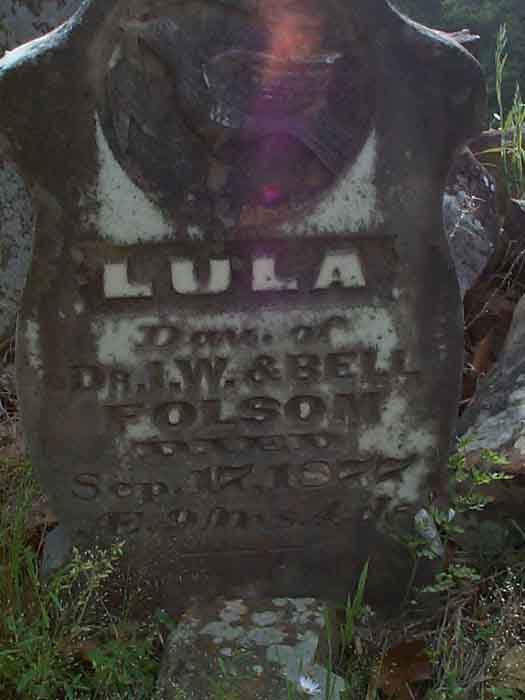 Dau. of Dr. I. W. & Bell Folsom, died Sep. 17, 1877, Age 9 ms 4 ds.