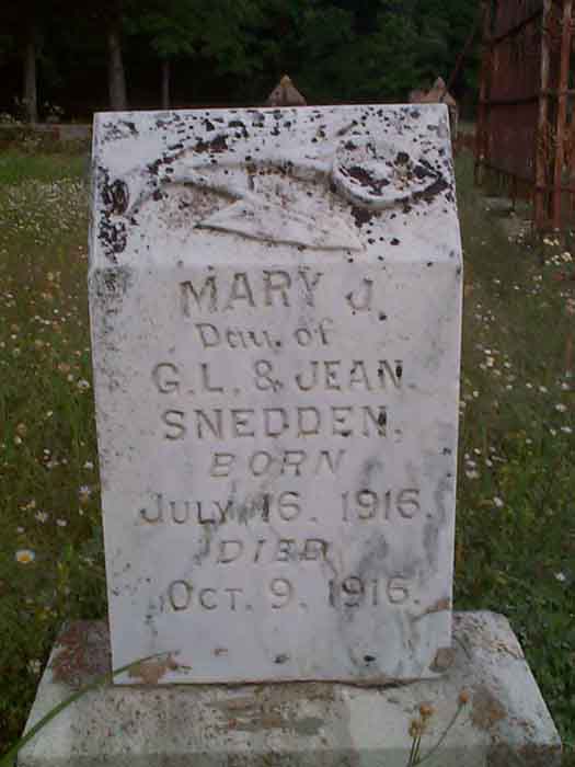 Dau. of G. L. & Jean Snedden, Born July 16, 1916, Died Oct. 9, 1916
