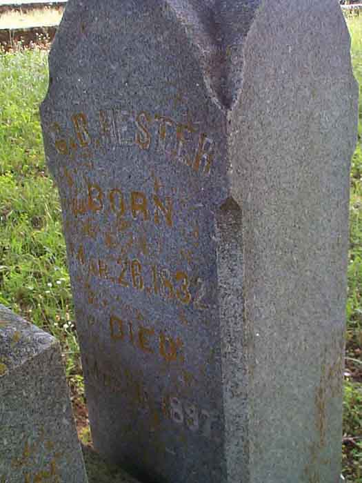 Front: G. B. Hester Born Mar. 26, 1832 Died Mar. 11,