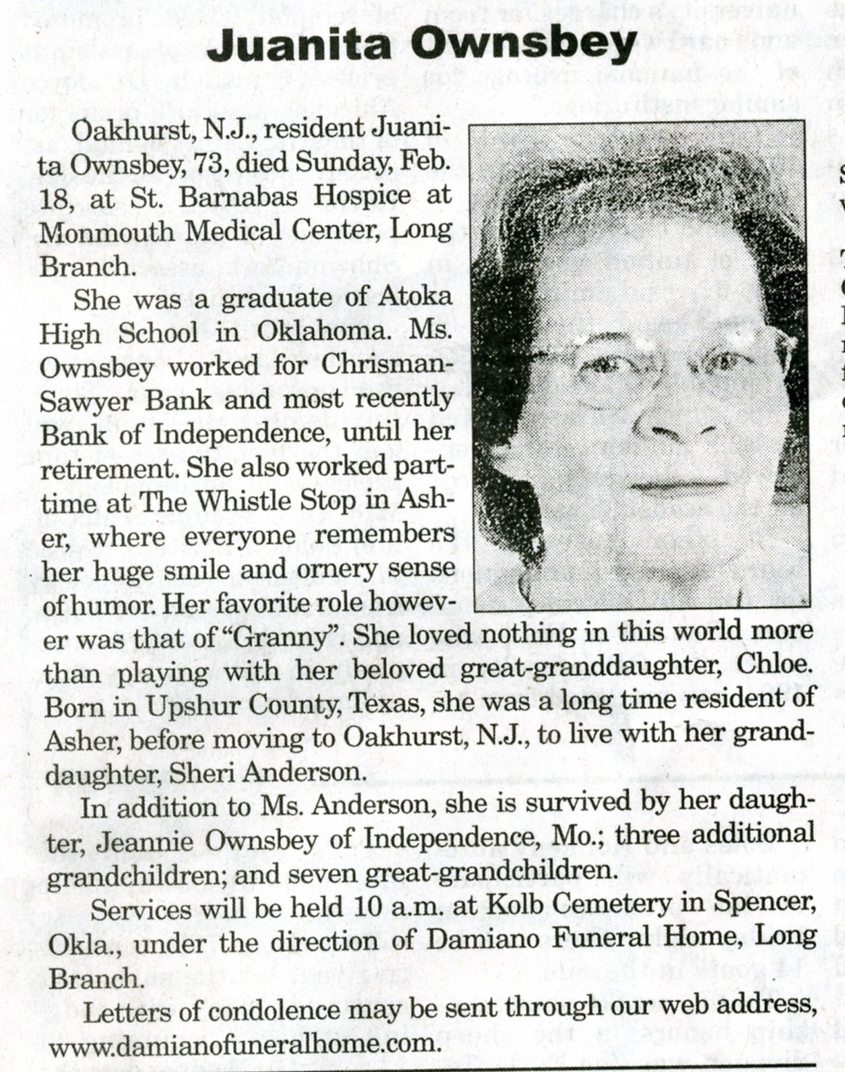 Rodriquez and her husband, Darryll, of Amarillo, Texas; great-grandchildren;