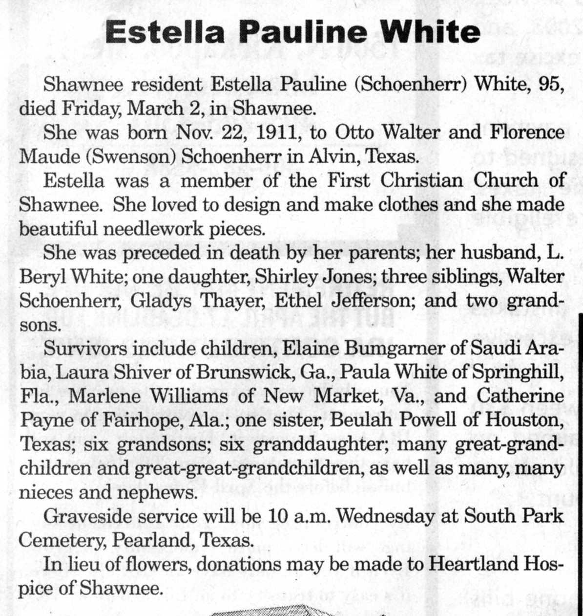 Survivors include her daughter and son-in-law, Linda and Ed Abel of Shawnee;