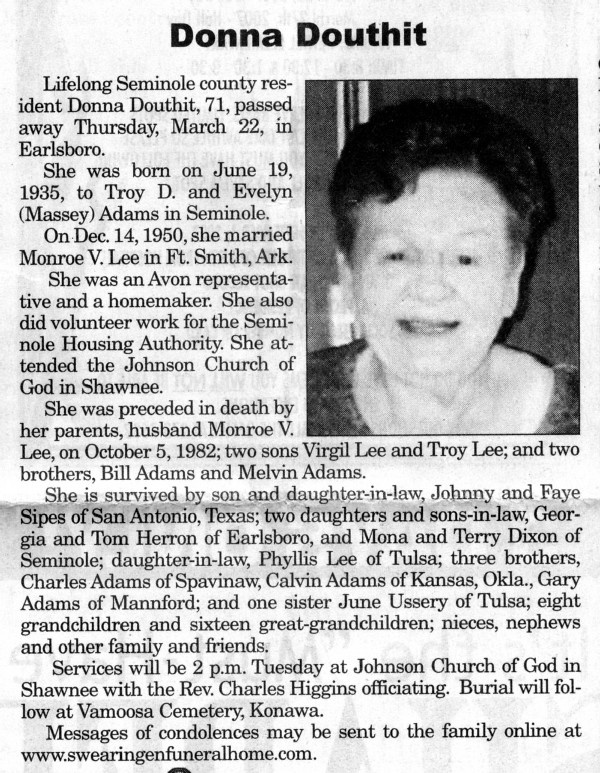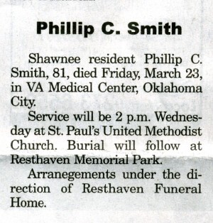 Minco, Okla.; two sisters, Elaine Ellis of Shawnee and Marge Wilson of Oklahoma