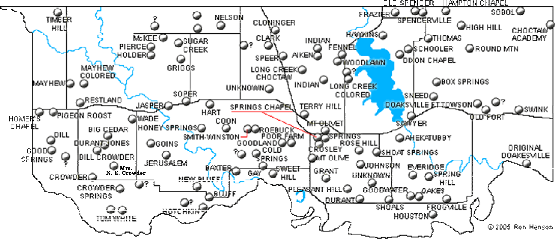 If you have information about any of these cemeteries or any cemetery or burials in Choctaw County not listed, please email the County Coordinator.