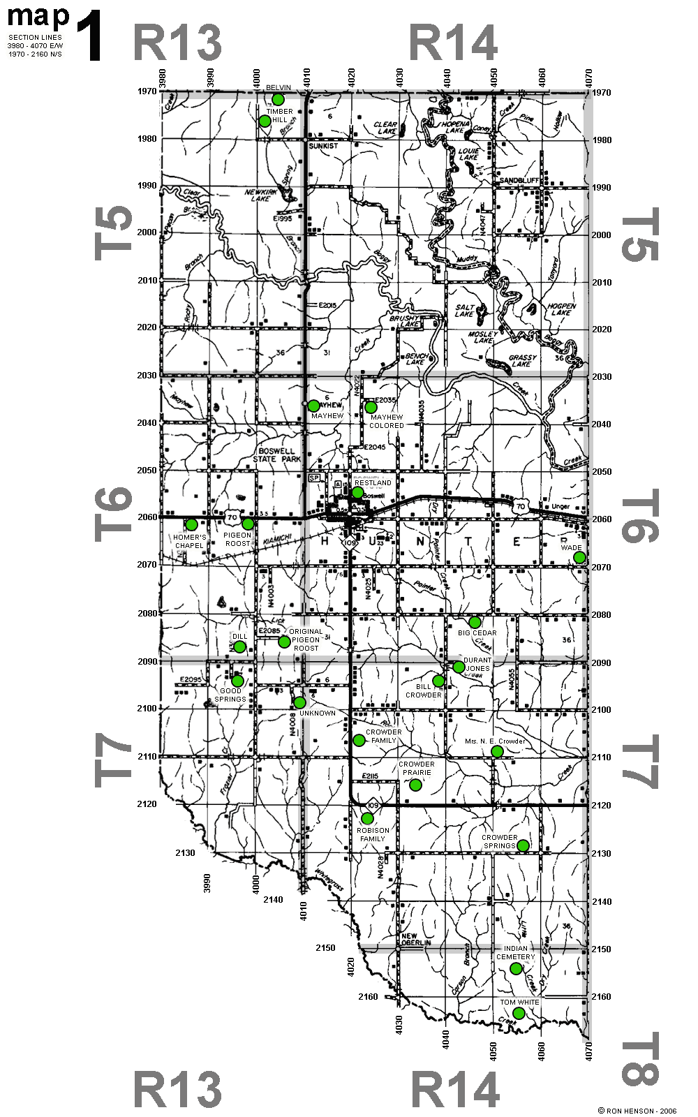 4. Reported cemetery on section line 4060 between 2140 and 2150. MAP 1