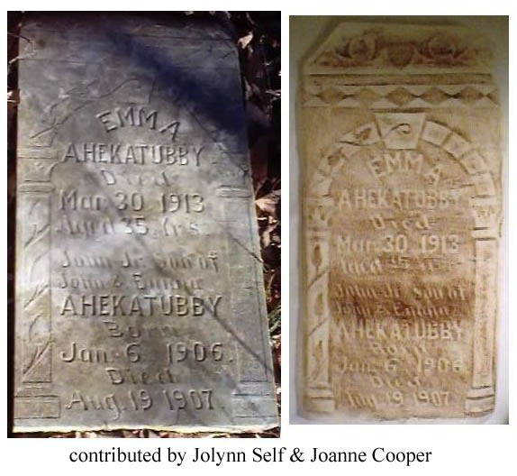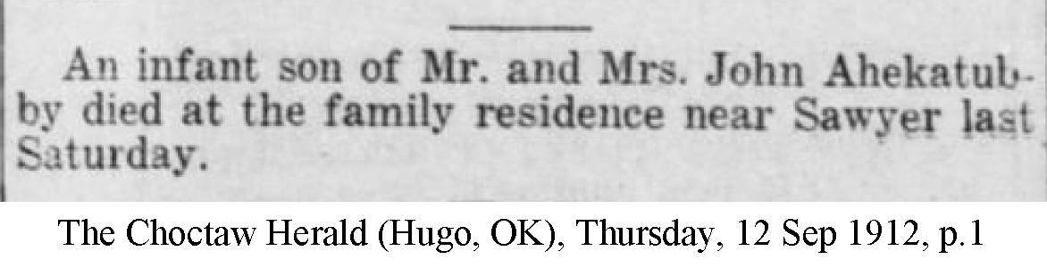 | Ahekatubby | John, Jr. | 6 Jan 1906 | 19 Aug 1907 | Son of John & Emma | |||