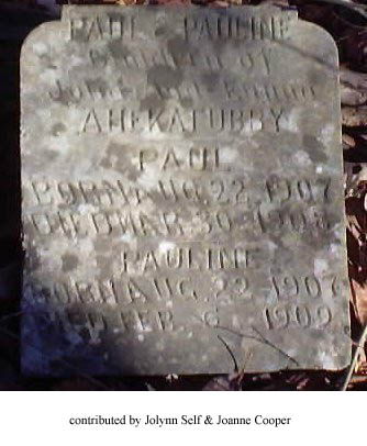 | Ahekatubby | Paul | 22 Aug 1907 | 30 Mar 1908 | Children of John and Emma | |||