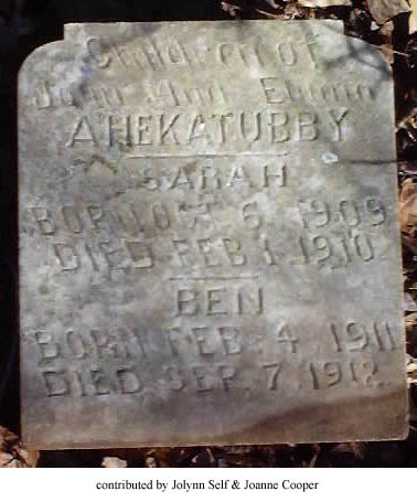 | Ahekatubby | Sarah | 6 Oct 1909 | 1 Feb 1910 | Children of John and Emma | |||