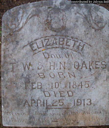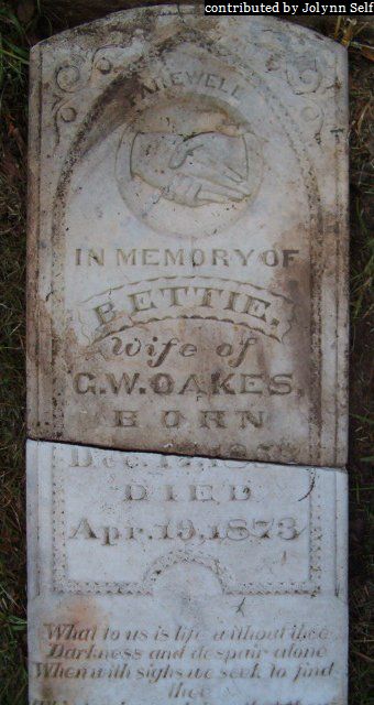 | Oakes | Bettie | 17 Dec 1857 | 19 Apr 1873 | ||
