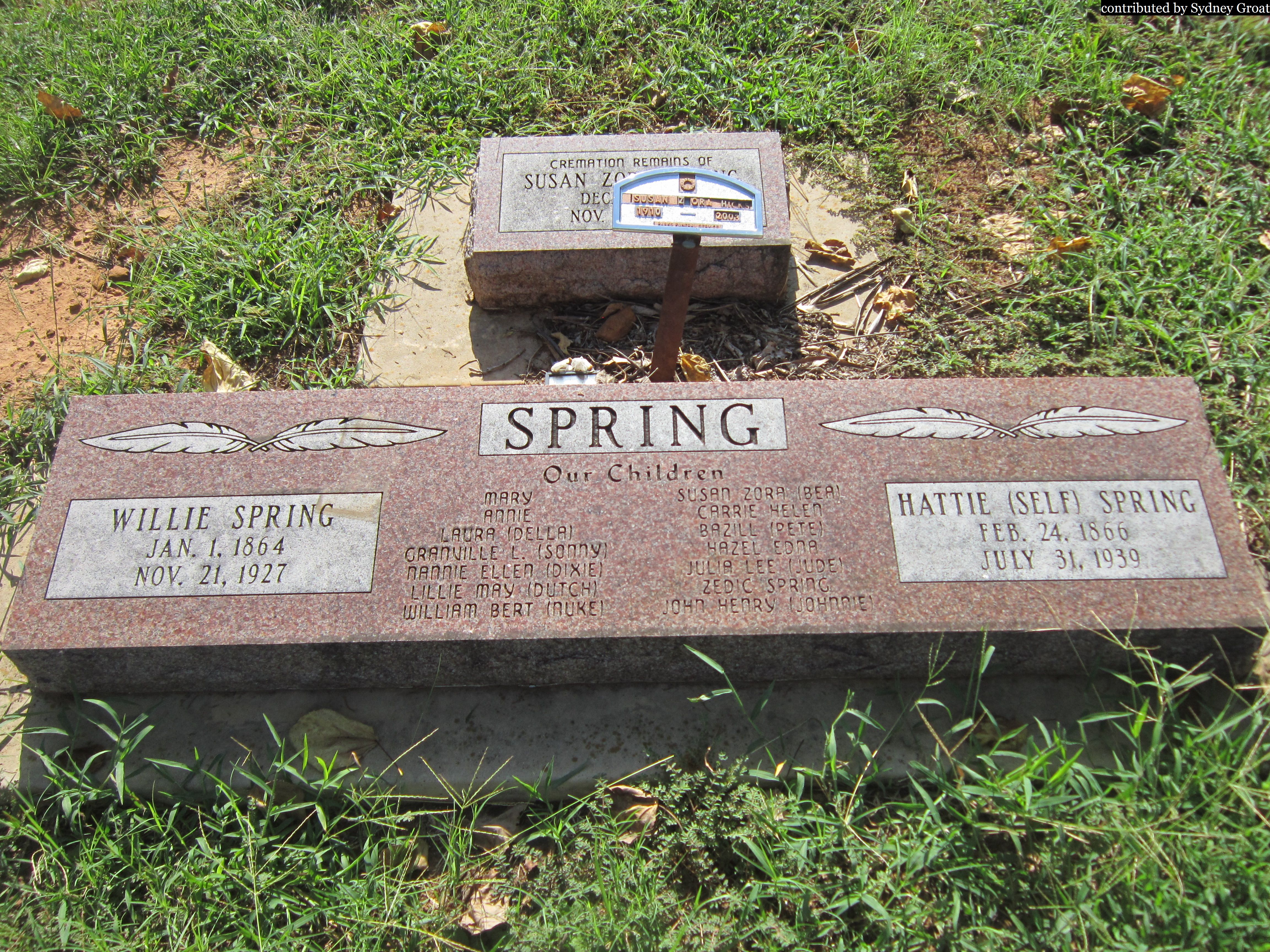 | Spring | William S. "Willie" | 1 Jan 1864 | 21 Nov 1927 | ||