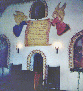 In the interior of the Chapel are wood carvings, paintings and murals of