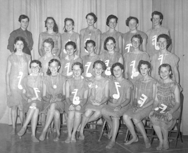 First Row: Mrs. Ralph Risdon, Sponsor; Della Lou James, Frances Hutson, Mary Ann Hayes, Sharon Kernodle, Deloris Kendall, Joyce Britton, Ann Conrad, Janis Howard, and Barbara Thomas