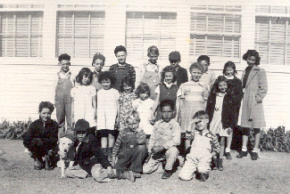 ![]() Back row: Shirley & Madeline Etter, Mrs. Tackett, Julie ?, and Victor ? Middle row: Middle row: Marie Lytle, Carlene ?, Eugenia Smith, and ? Front row: Front row: Jimmy Hasenbeck and Wesley Barrow |