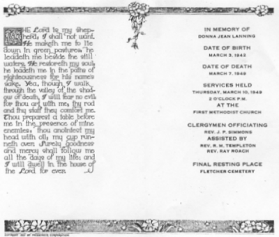 The funeral for Donna Jean Lanning, 7, daughter of Mr. and