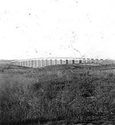 Sailboat Bridge in Grove, Delaware Co. Date unknown. Taken from a distance before the bridge was completed or the lake had not formed.