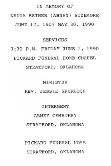 Sizemore on December 12, 1931 in Coleman, Oklahoma. Zetta died in