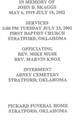 JOHN D. SKAGGS was born May 6, 1919. He was the younger