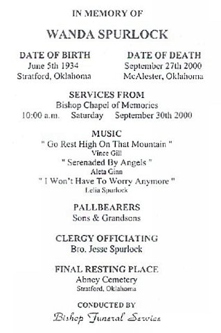 Joseph, Missouri; a son, Kevin Louis Spurlock of McAlester, and another
