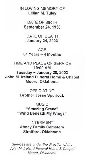 for Lillian read: Lillian Minnie Tuley of Moore, Oklahoma, died on