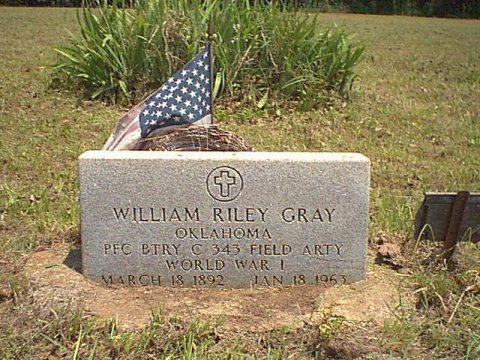 GRAY, William Riley Okla PFC BTRY C343 FIELD ARTY WORLD WAR I March 18, 1892 June 18, 1963