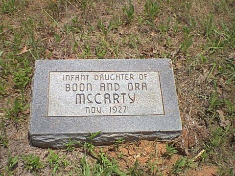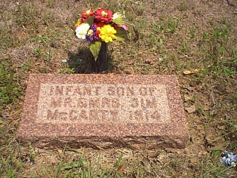 headstones. One is Infant son of Mr. & Mrs. Jim McCarty and one is Infant Daughter of Boone & Ora McCarty |