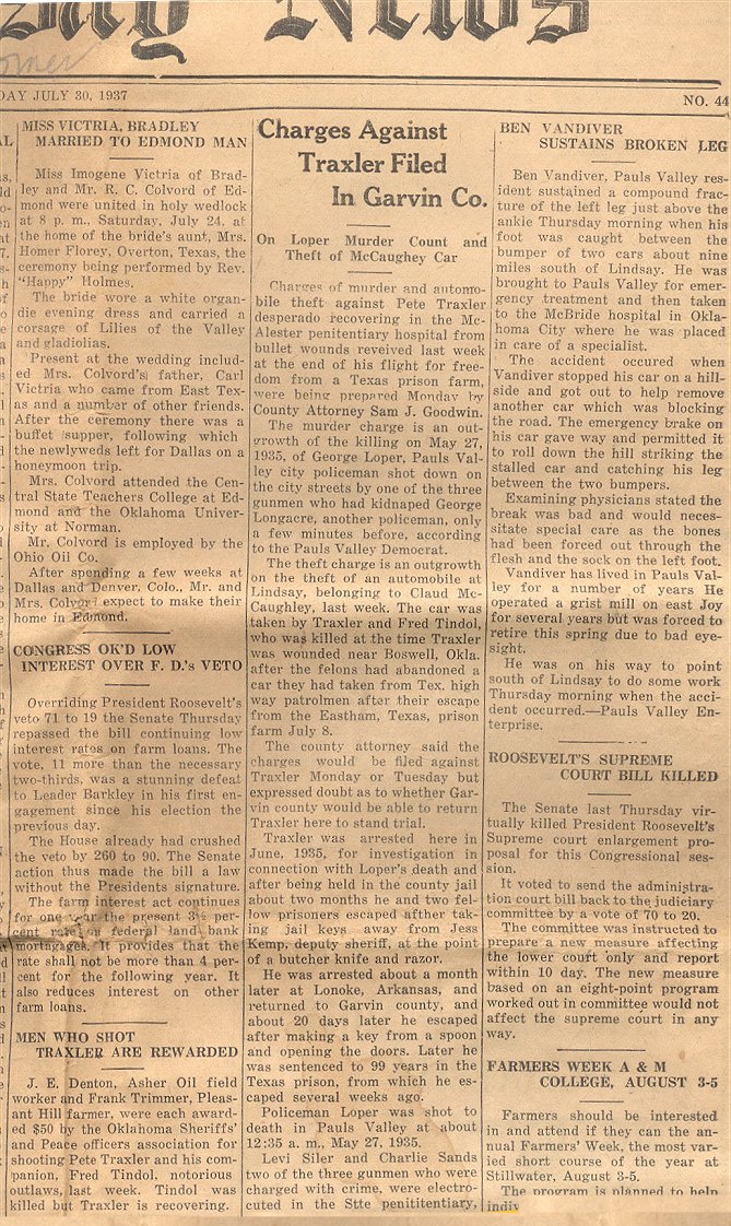Victoria Bradley marriage, Pete Traxler, J.E. Denton, Frank Trimmer, Fred Tindol, Loper Murder