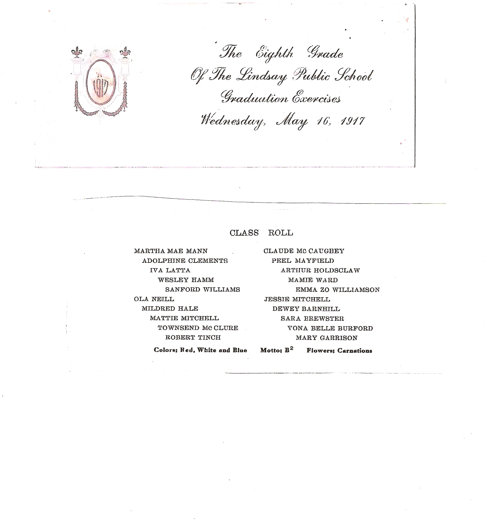 Lindsay - Lindsay's first brick school building was built in 1910. This building burned to the ground in 1918 while being fumigated because of an influenza epidemic.