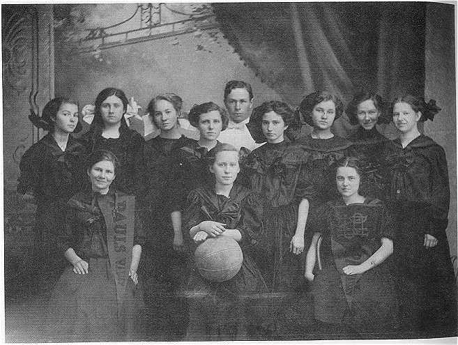 Coach Walter Isle, Ada Saxon, Vivian Drake, Amey Taylor and Jewel Patchell