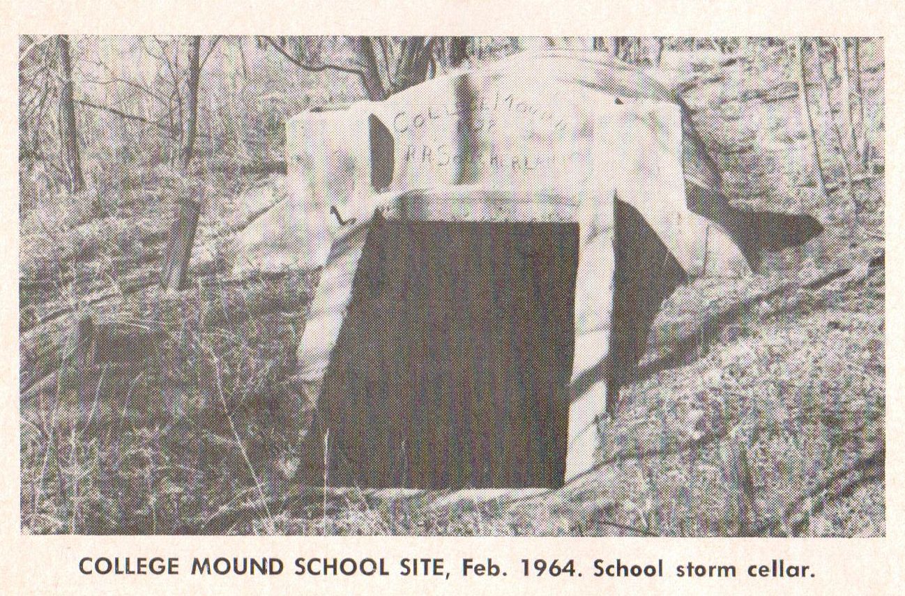 Today (1966) the old school site is over-grown with black locust trees, undergrowth, and weeds. A large, well preserved, storm cellar marks the location.