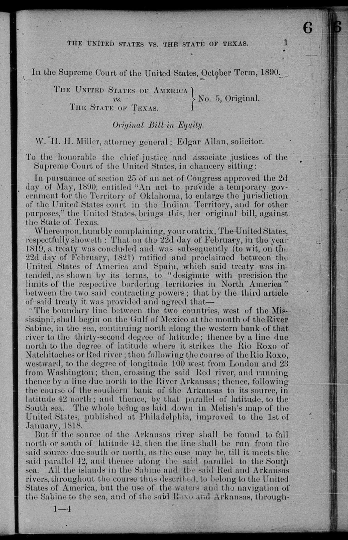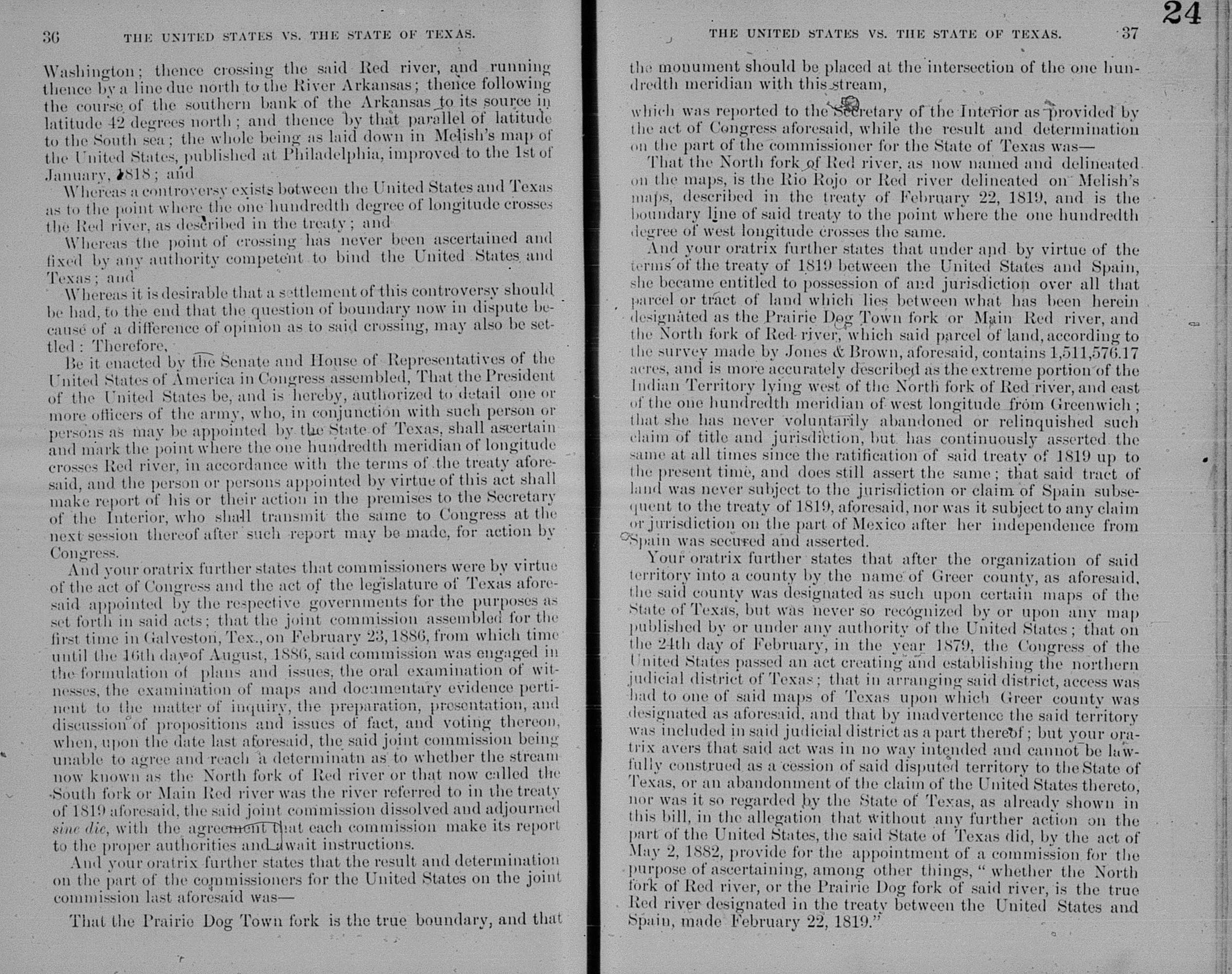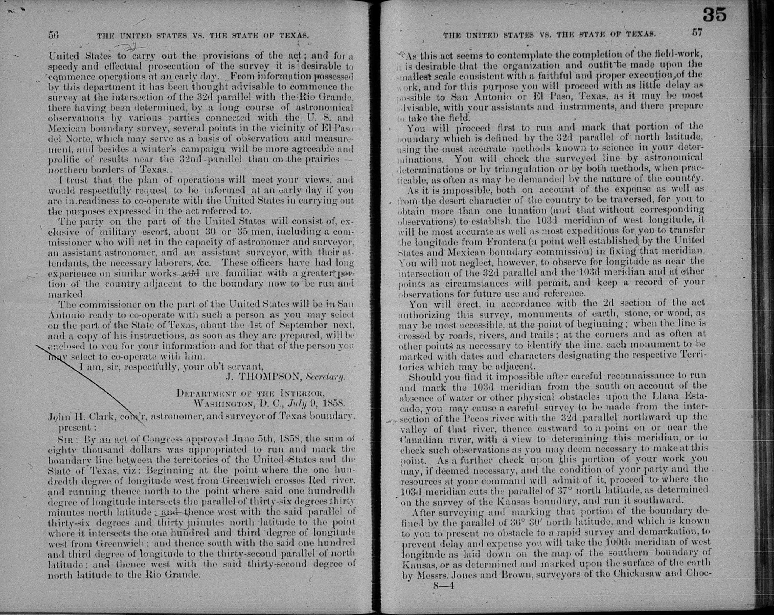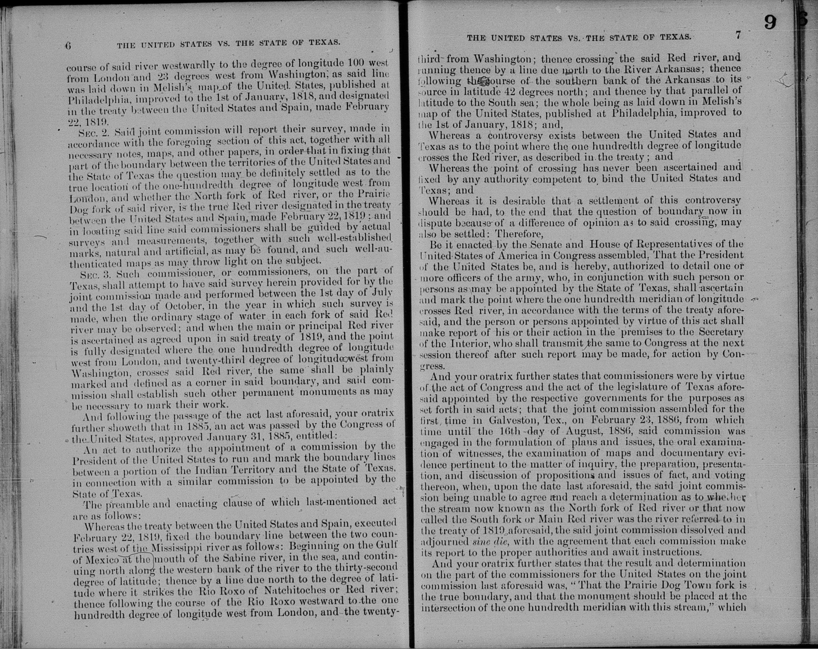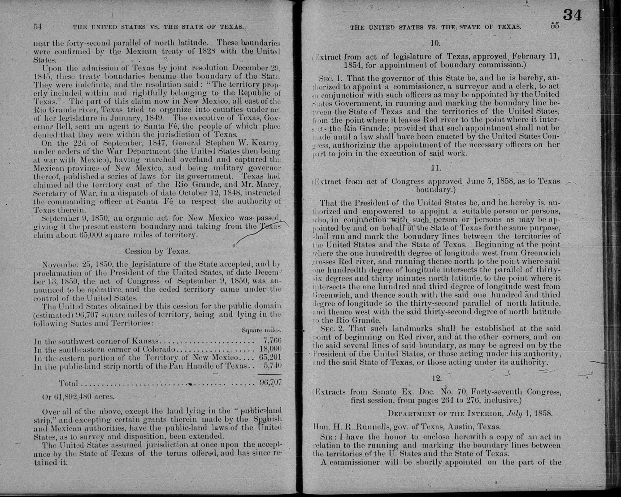 Extract from act of Congress approved June 5, 1858, as to Texas boundary