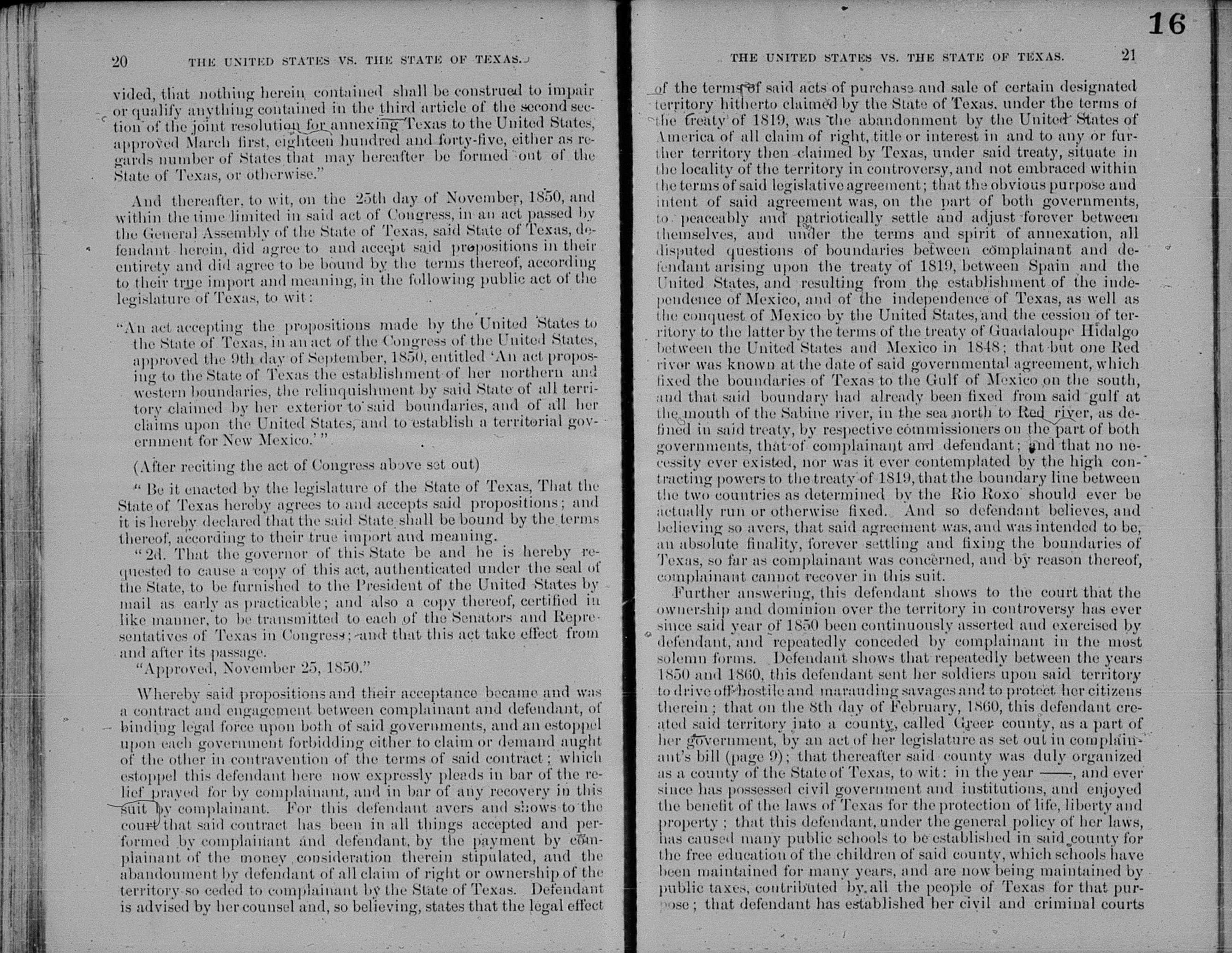 Extract from act of legislature of Texas, November 25, 1850, accepting