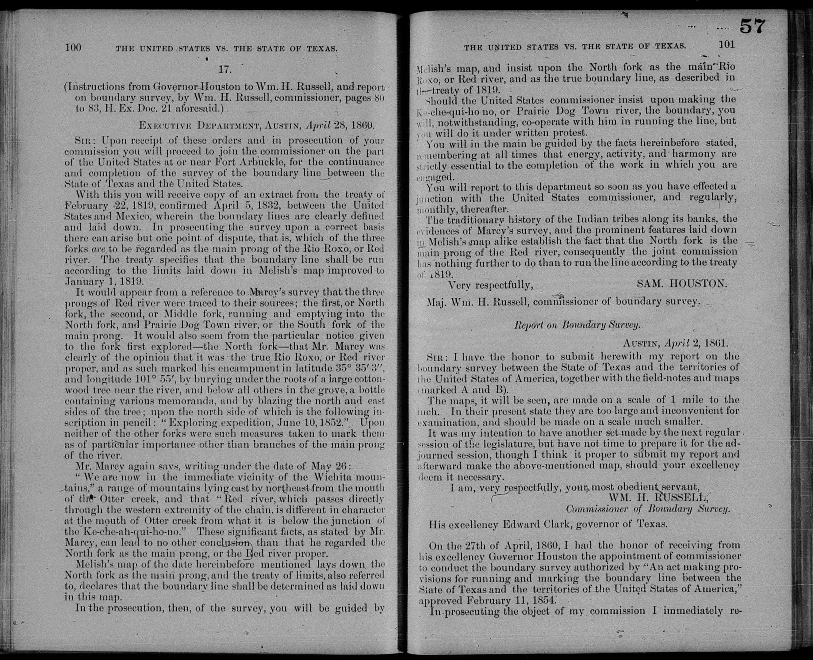Instructions from Governor Houston to Wm. H. Russell, and report on boundary