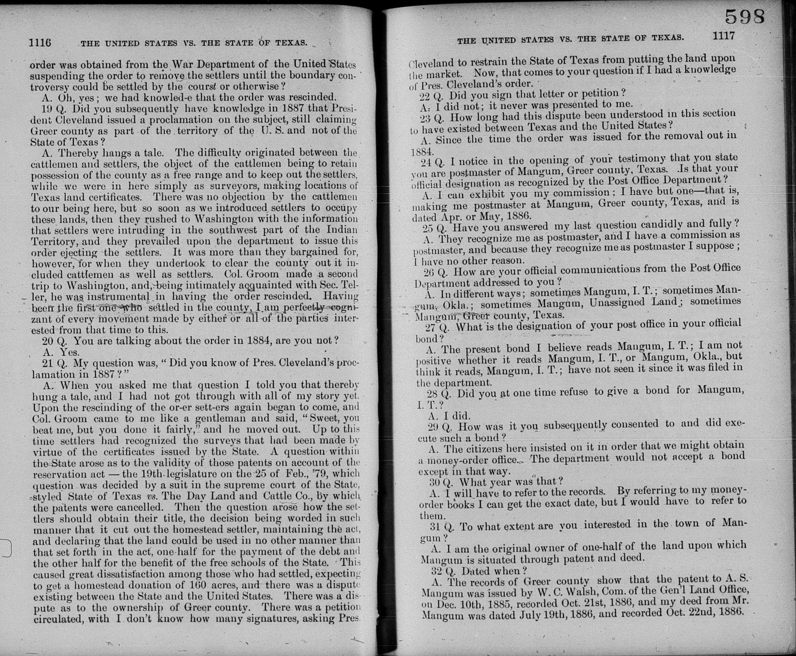 Extracts from message of Governor Roberts in relation to Greer county, dated