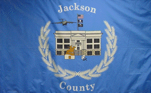 The Jackson County flag above is from the Jackson County Government site, described there as "the result of a poster contest during County Government Week in 1997. It is the product of three students in Mrs. Joyce Wikoff's class, Matthew Mills, Tina Butler and Leslie Moss. These students have made a great contribution to their county and we are very proud to display the flag."