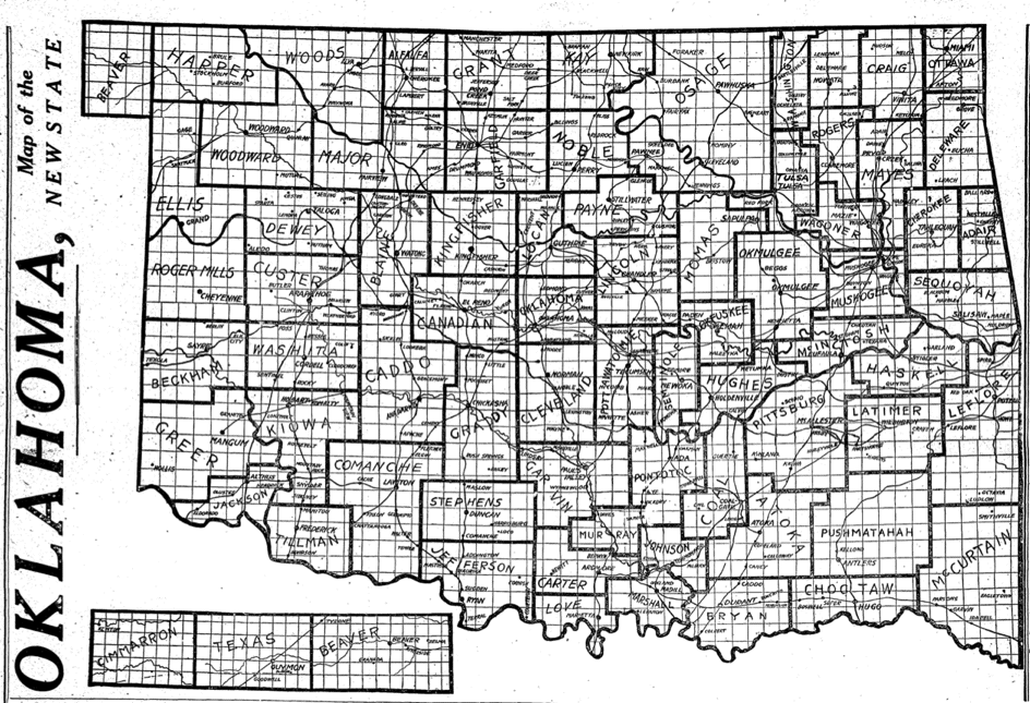 Map published in various Oklahoma newspapers 14-15 February 1907 NOTE that Altus is spelled "Althus" here!!! Return to Jackson County