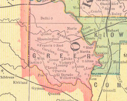 Right: [part of] Oklahoma and Indian Territories from Historical Maps of Oklahoma Dated and published 1895 by George F. Cram. |