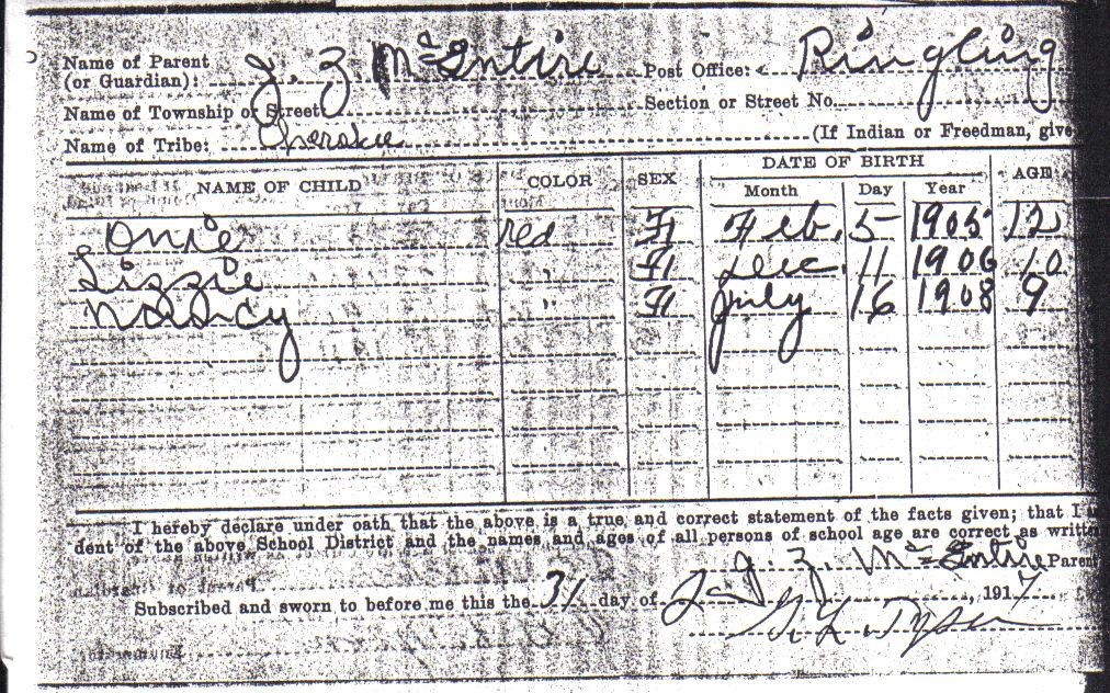 with children Onie F. born 1904, Lizzie born 1905, Nancy M.